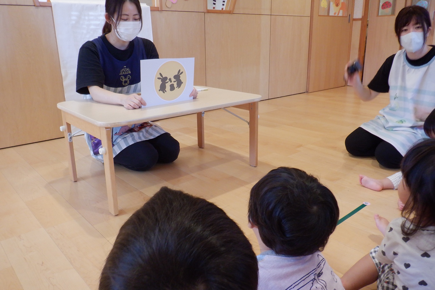 お月見の絵本を見たり、由来を聞いたりしました☁😊
