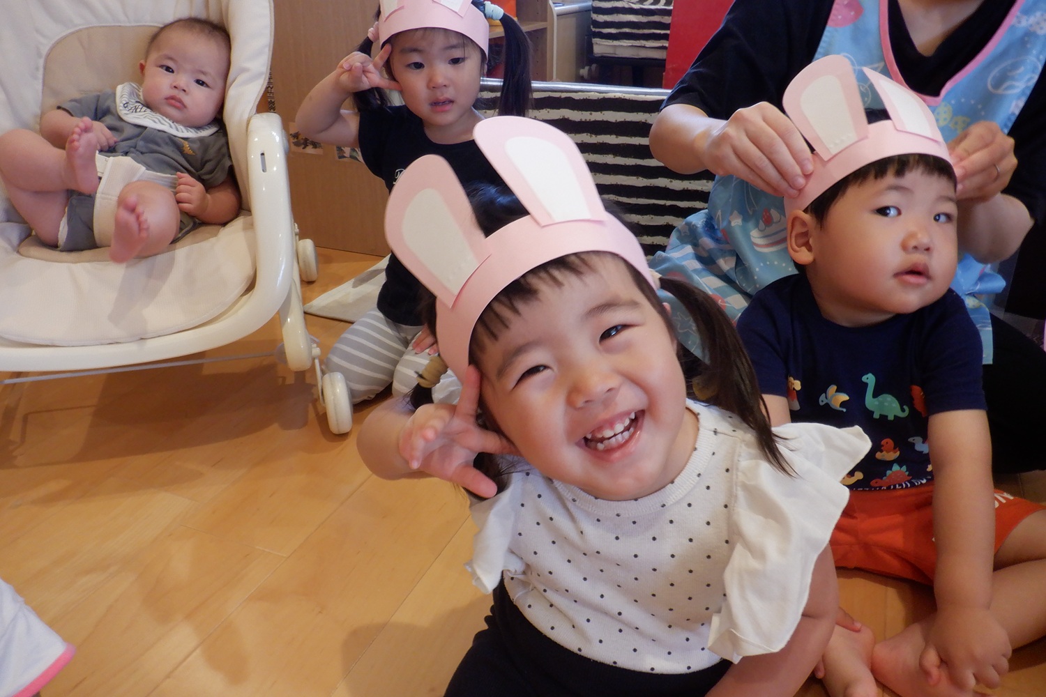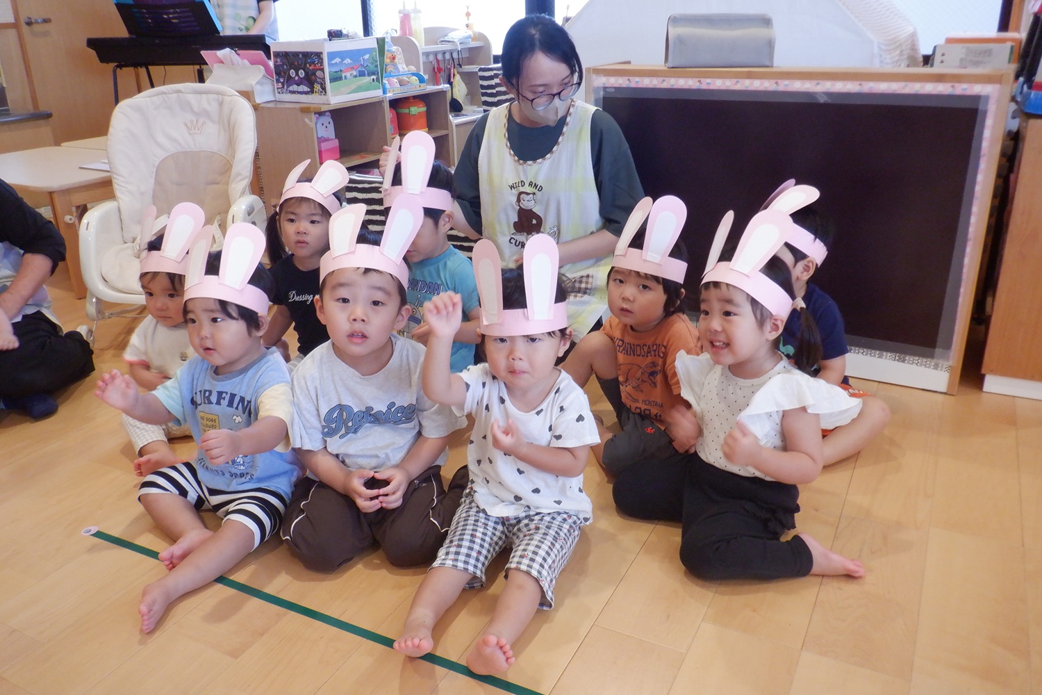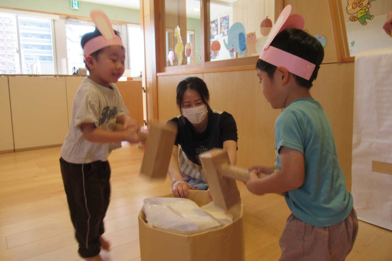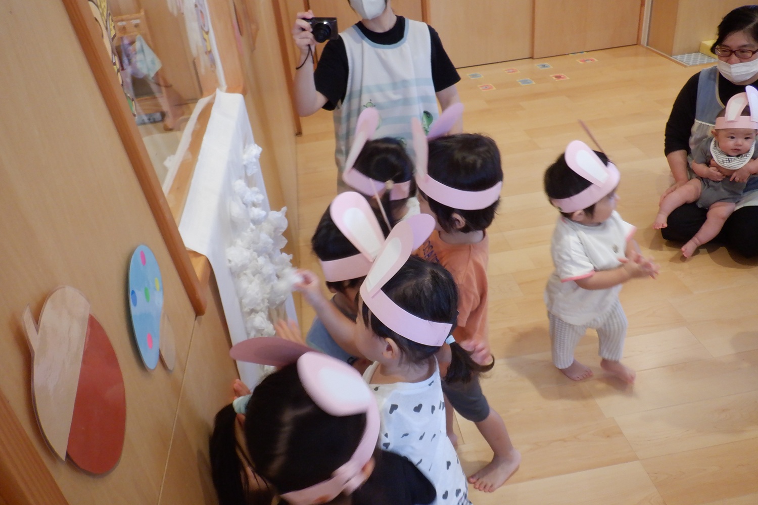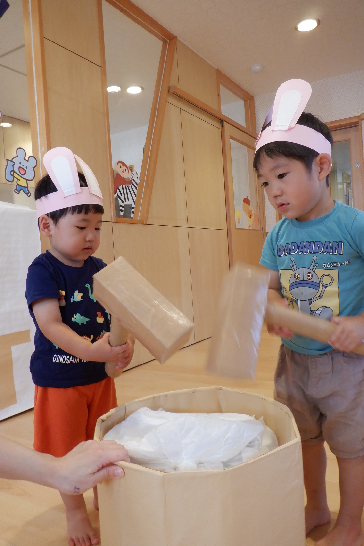 お話を聞いたら、みんなでうさぎさんに変身🐰❣うさぎさんのように「ぺったん!ぺったん!」とお餅つきをしました💓