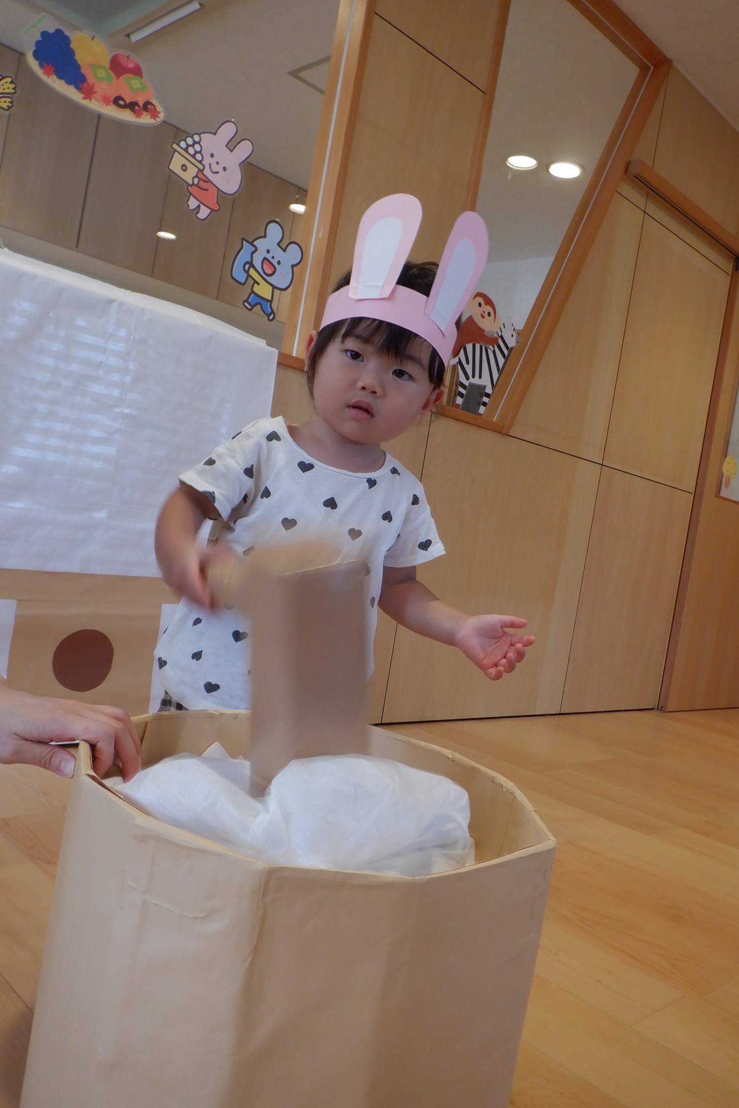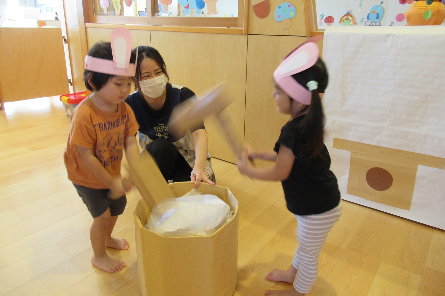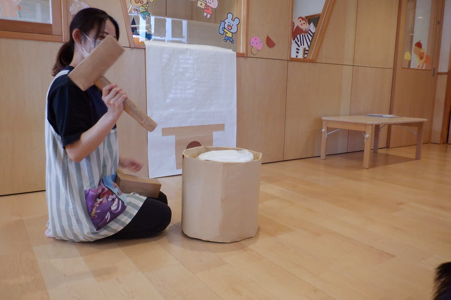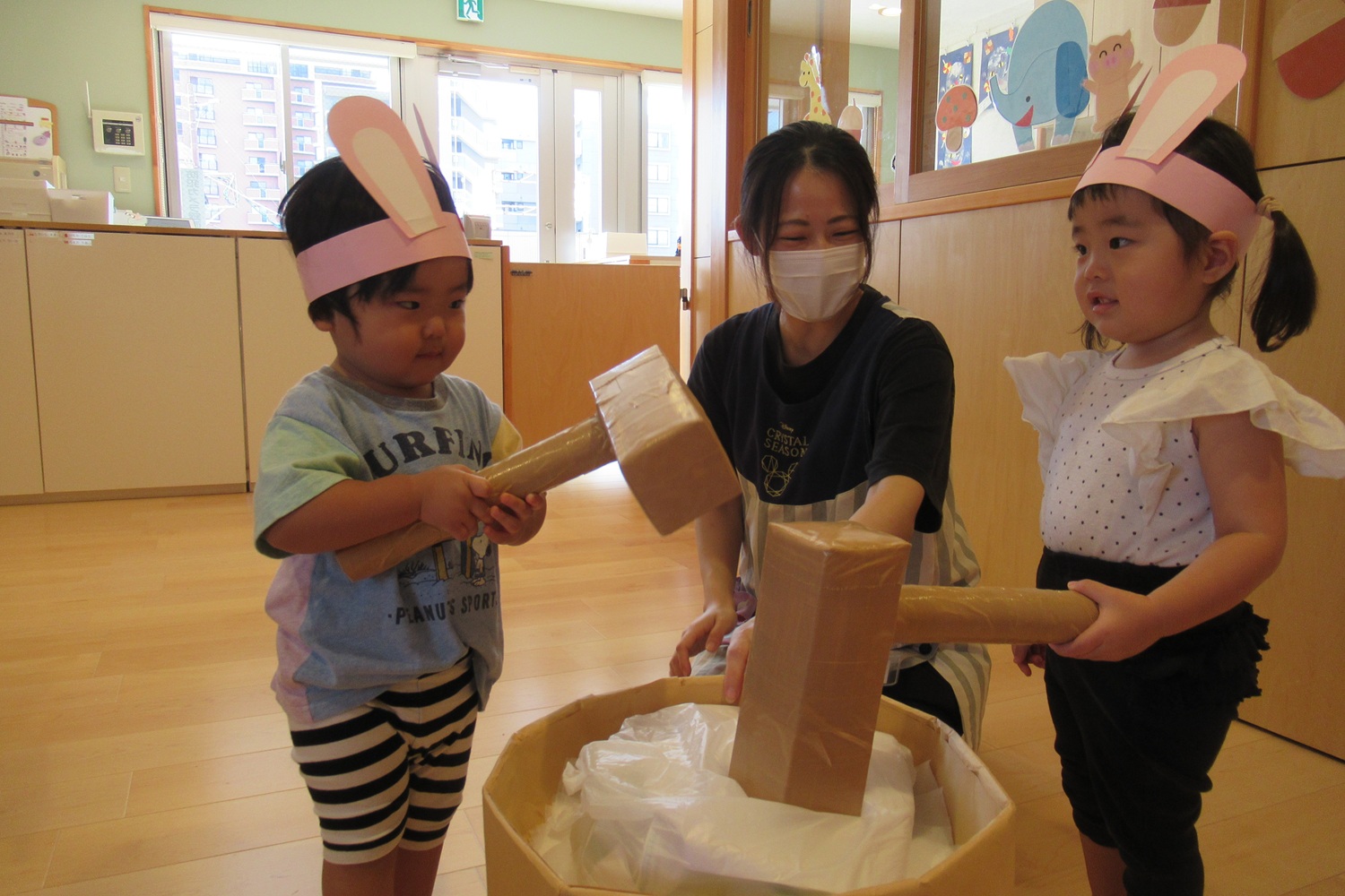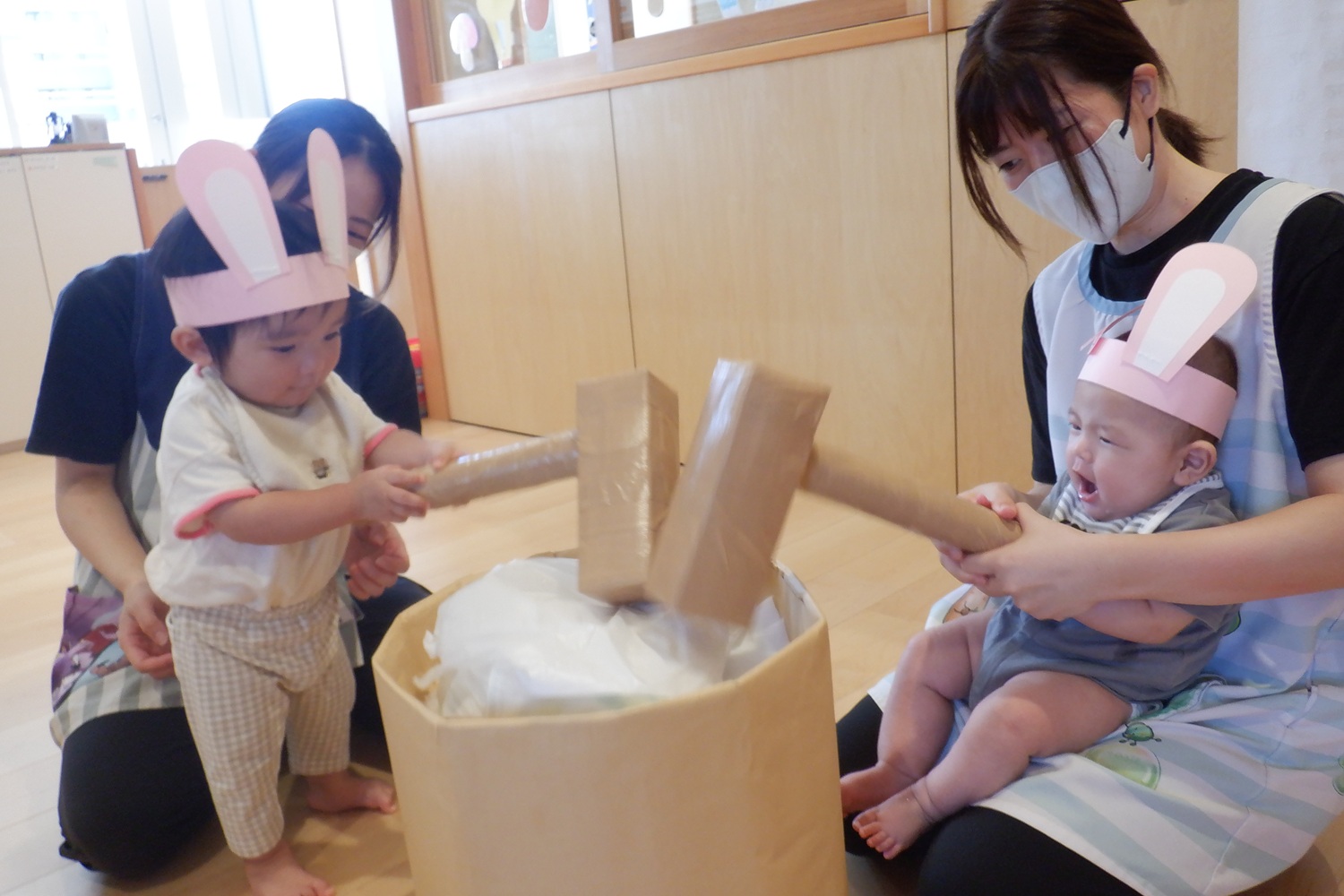お話を聞いたら、みんなでうさぎさんに変身🐰❣うさぎさんのように「ぺったん!ぺったん!」とお餅つきをしました💓
