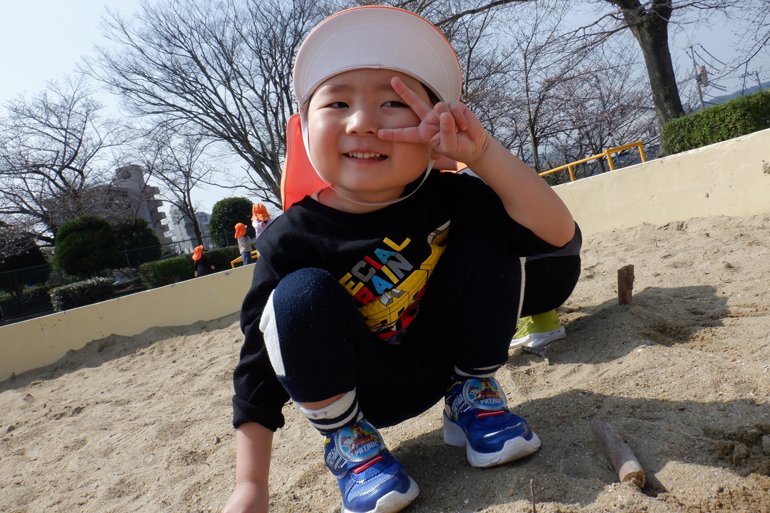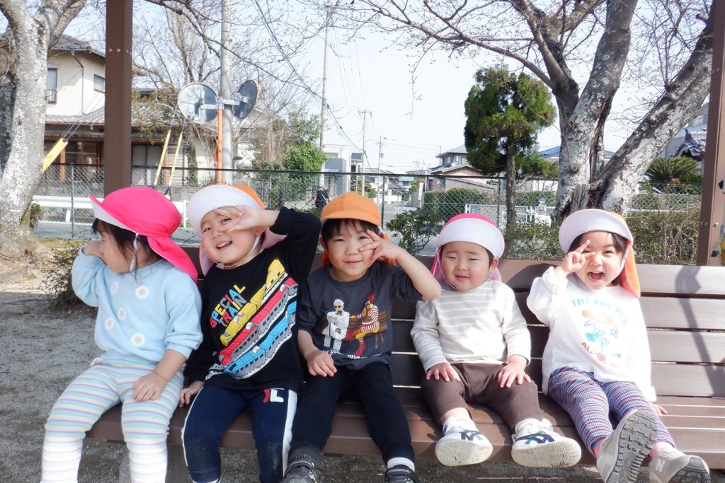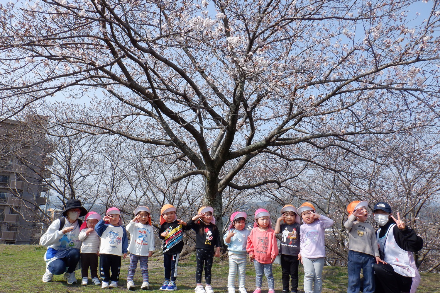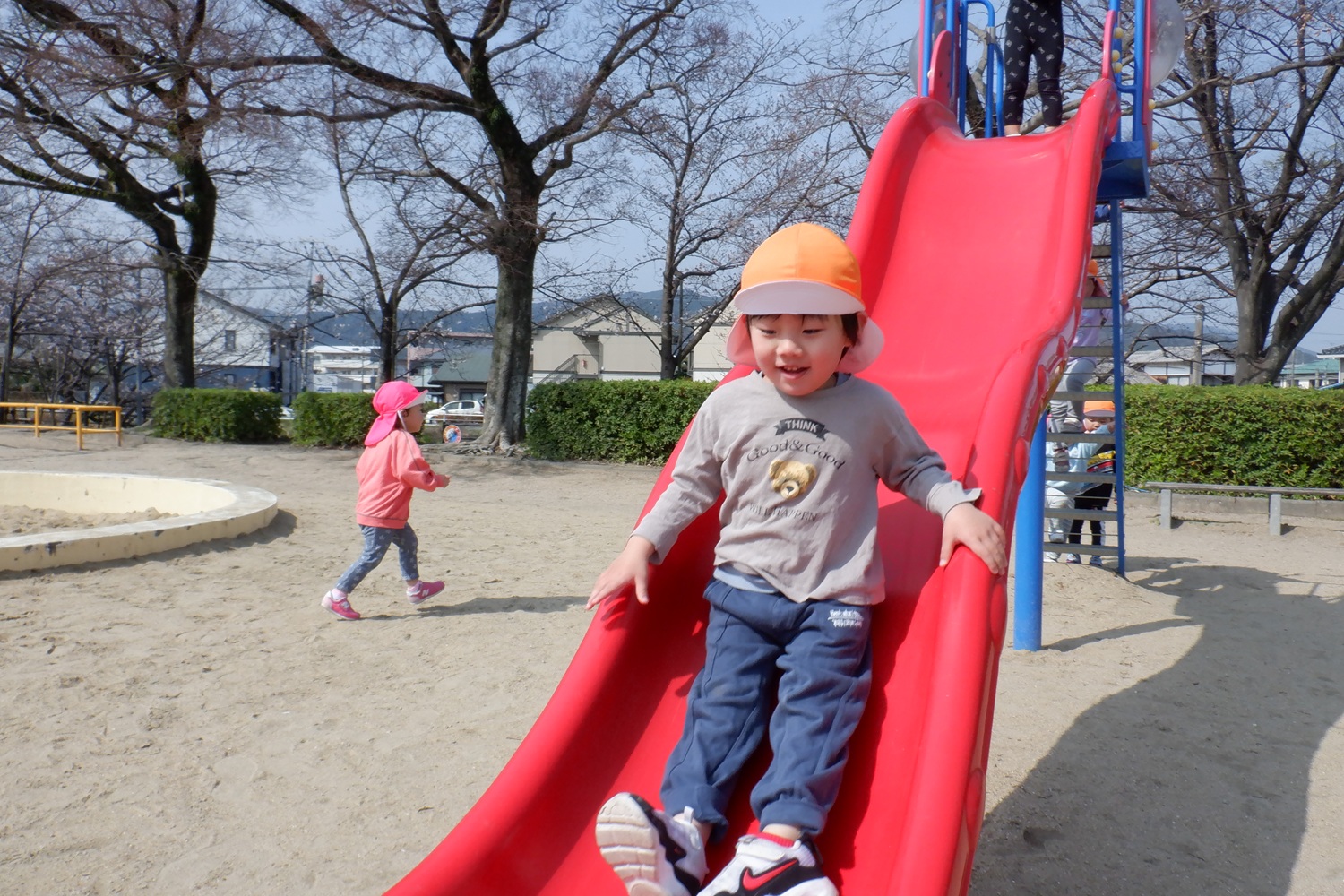 桜🌸も咲いていて、みんなで写真を撮ったり、走り回ったりと楽しんでいましたよ💖公園では、いつもと違う遊具に興味津々で滑り台やブランコなど汗びっしょりになるほど楽しみ、ベンチに寝転がり休憩するお友達もいました🤣🤣