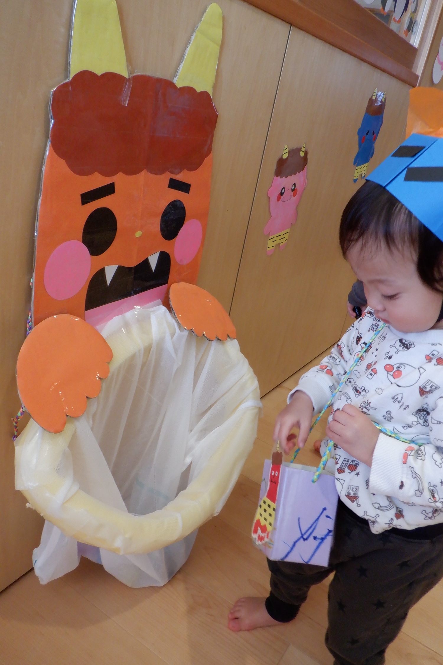さぁ~!!!みんなで豆まきするぞ~!!!💪👹💪泣いちゃったお友達もいましたが、みんなの心の中にいる鬼をやっつけました!!!