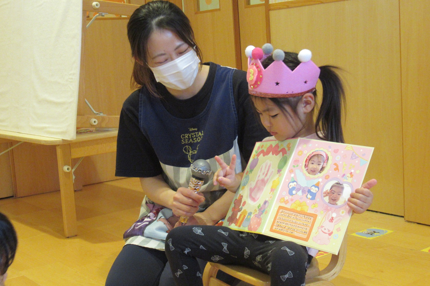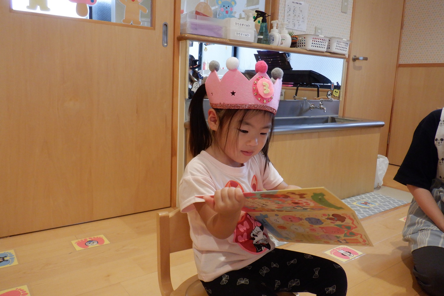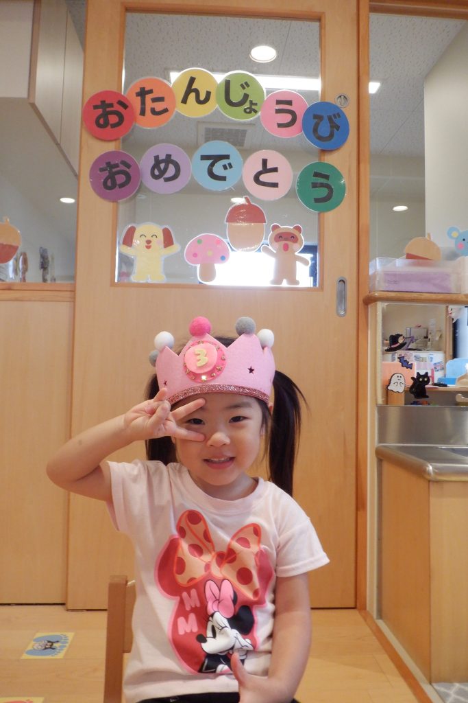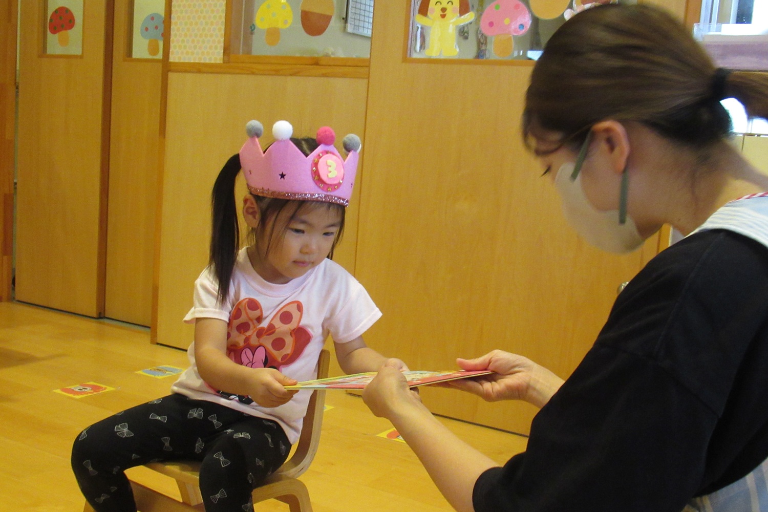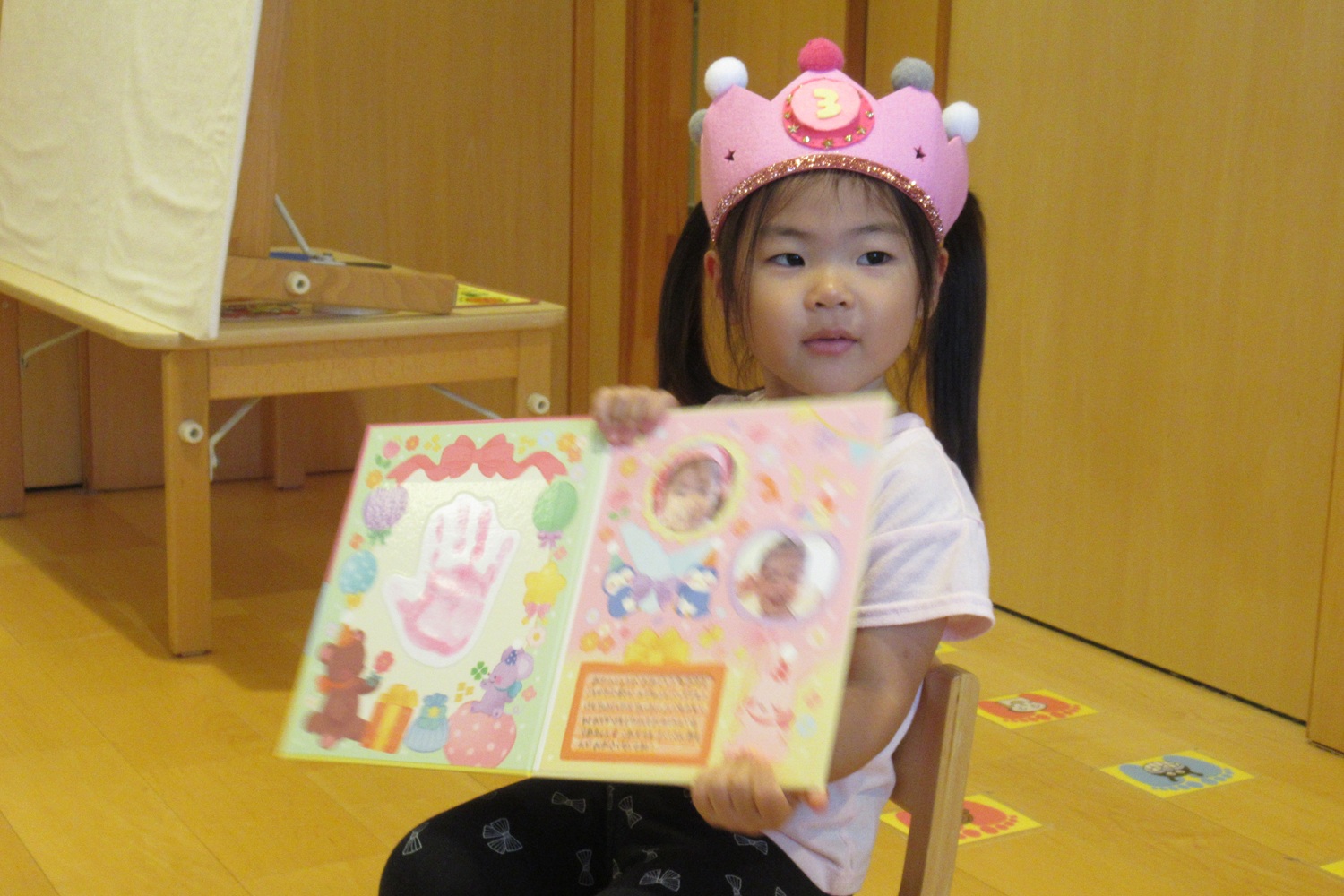 誕生カードをもらうと、みんなに見せてくれたり、インタビューでは、好きな食べ物や好きな遊びを上手にお話してくれましたよ💕「おめでとう~🎉」とお祝いしてもらってニコニコ笑顔で「エ~イ✌」とボーズも決めてくれるお友達でした💓