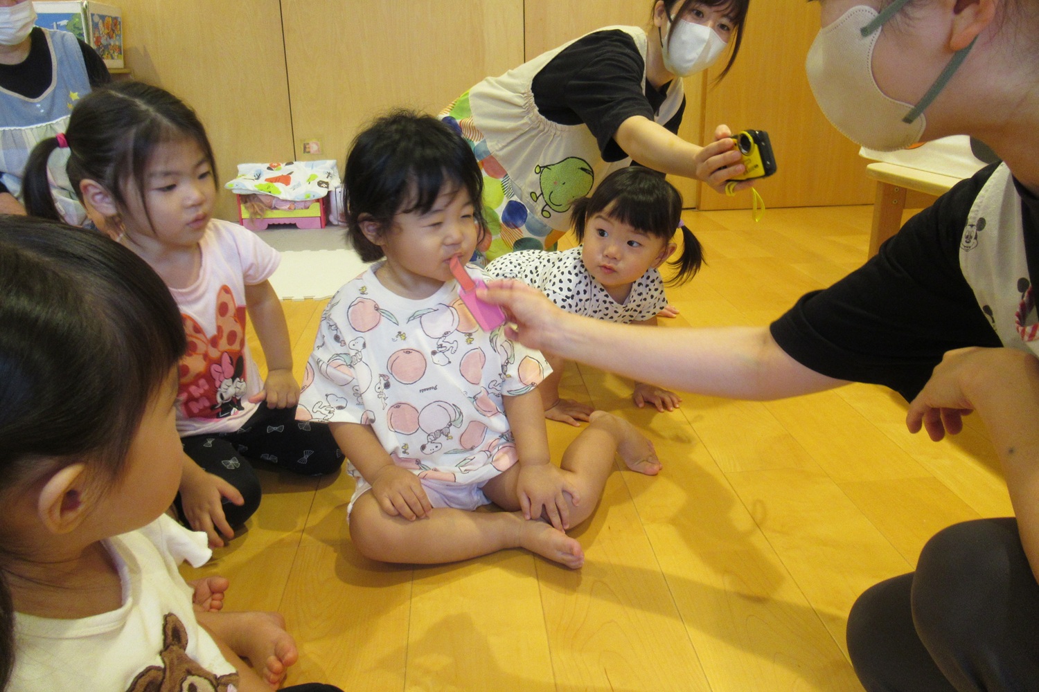 「赤!青!」と好きな色を言って歌ったり、踊ったりして楽しんでいました💖