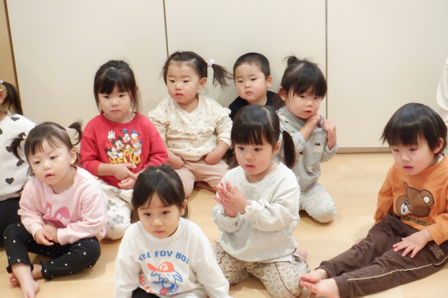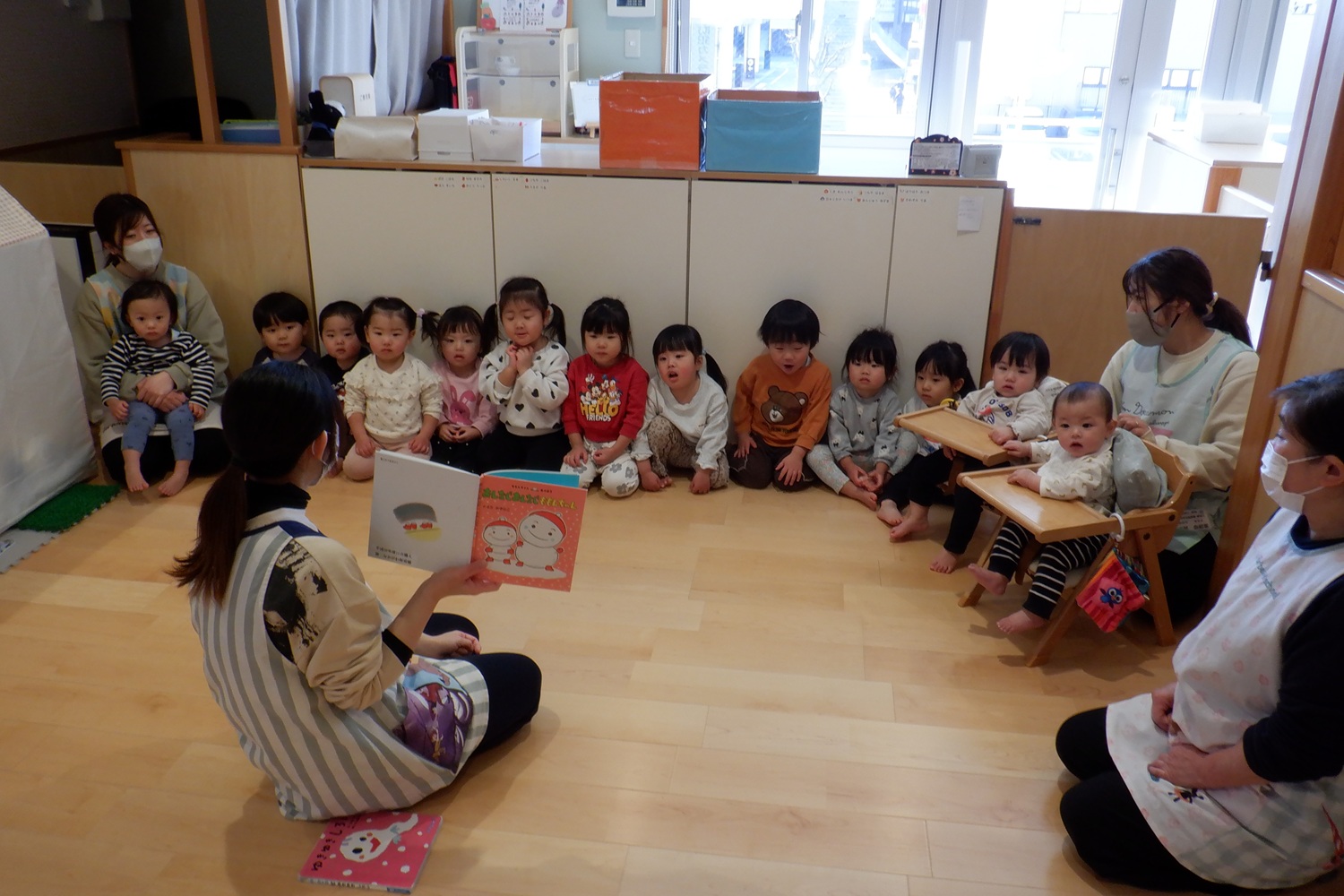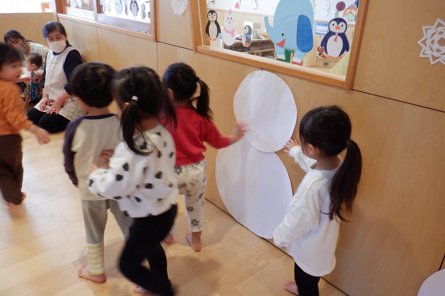 今日は、2月のお楽しみ会がありました⛄今月は、お誕生日のお友達がいなかったのでみんなで雪だるま作りをしました💓みんなが大好きなももんちゃんの絵本を見てワクワク✨