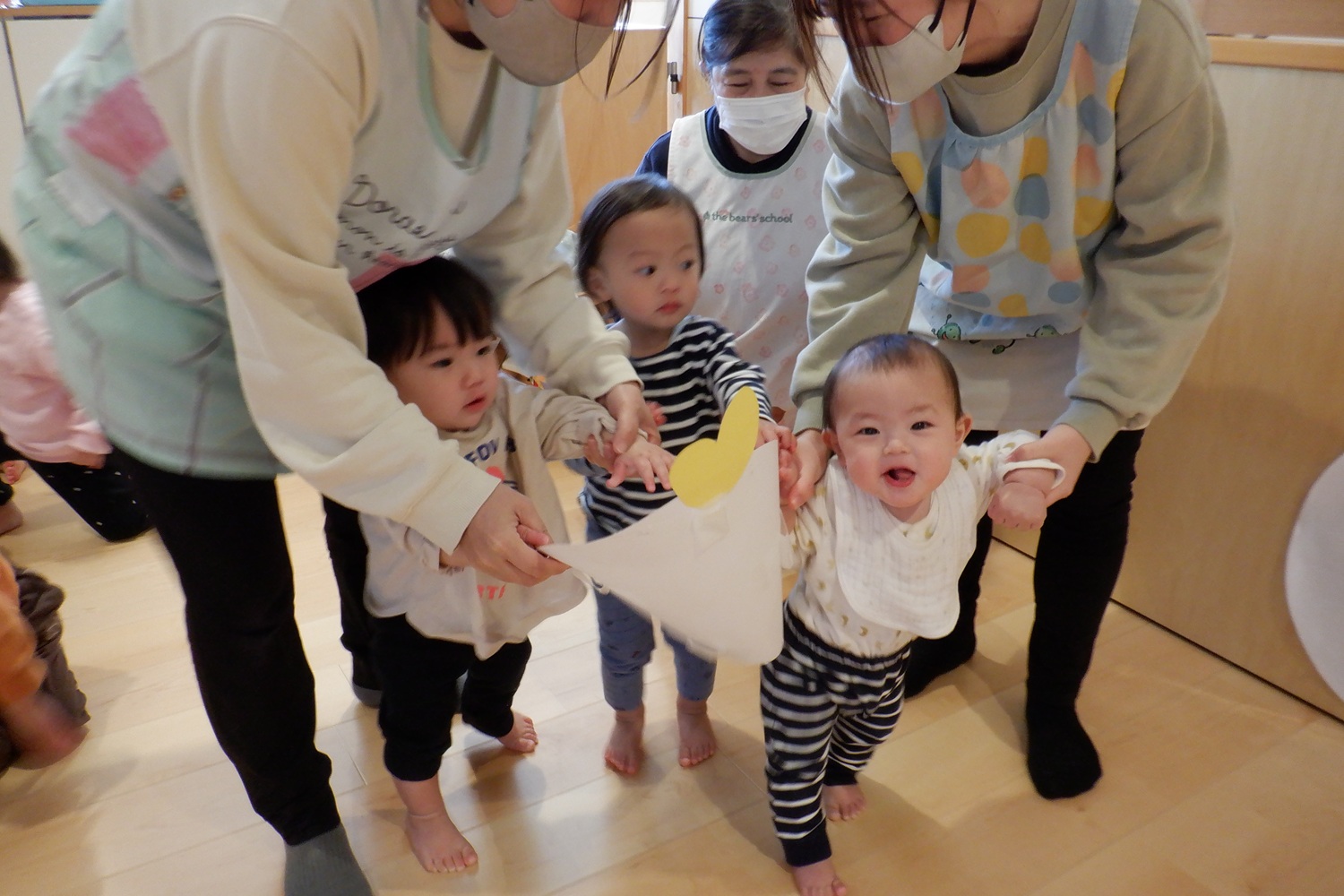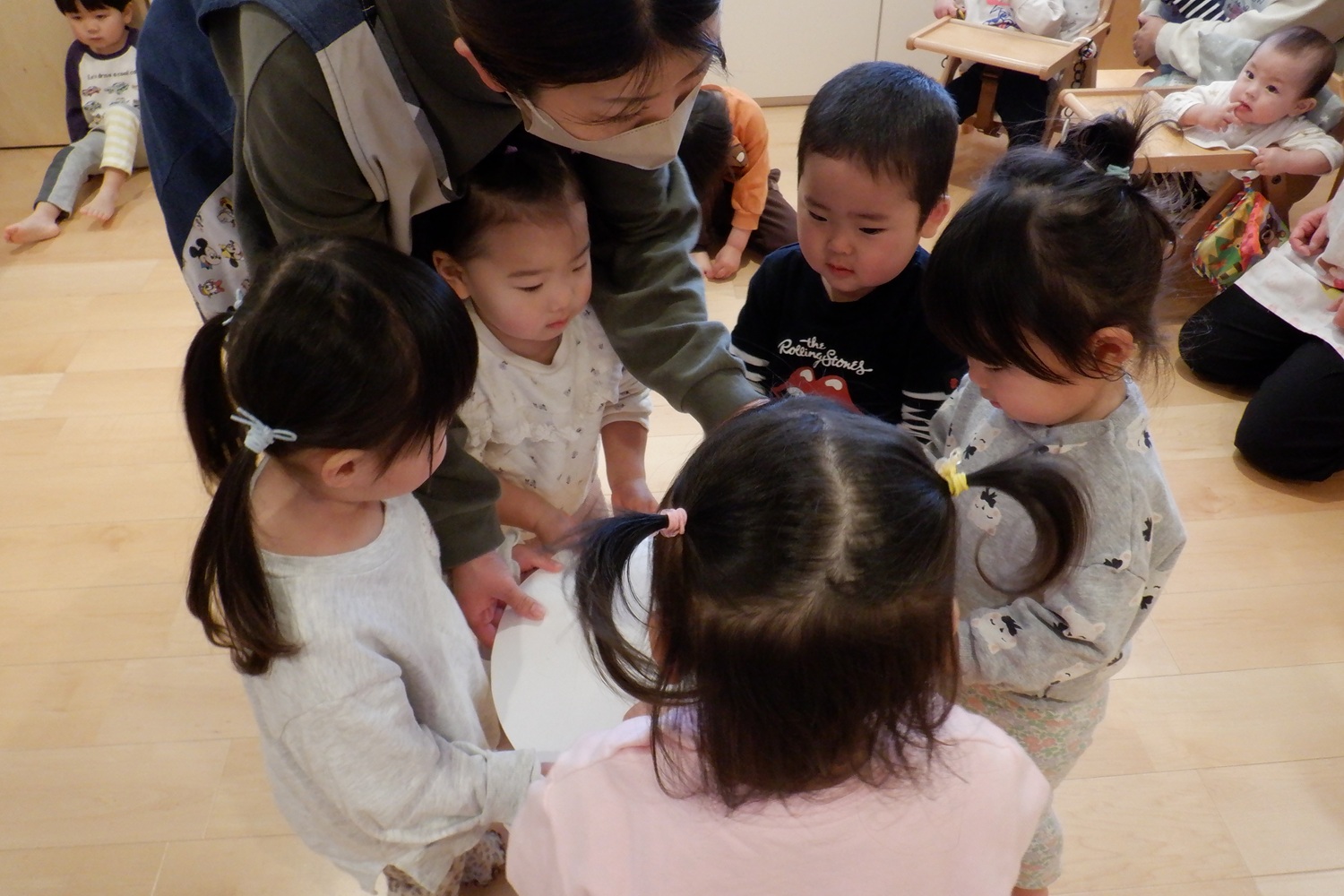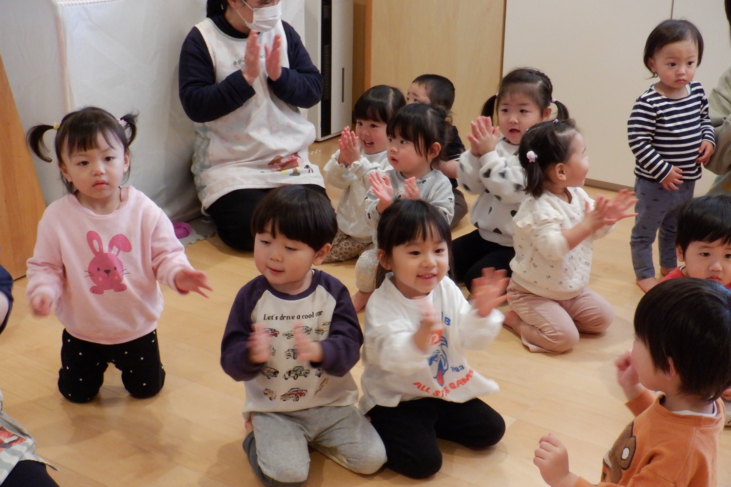 今日は、2月のお楽しみ会がありました⛄今月は、お誕生日のお友達がいなかったのでみんなで雪だるま作りをしました💓みんなが大好きなももんちゃんの絵本を見てワクワク✨
