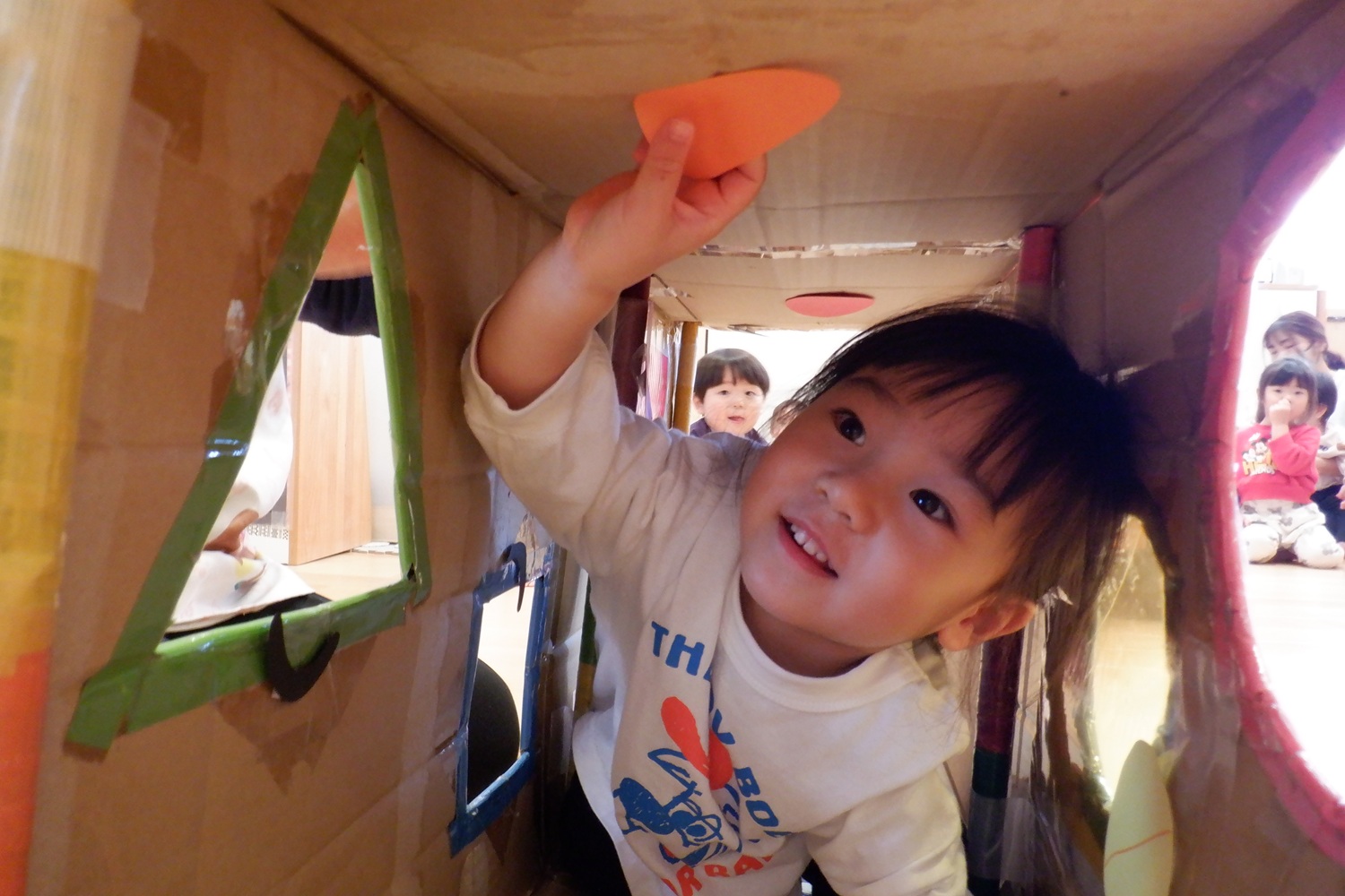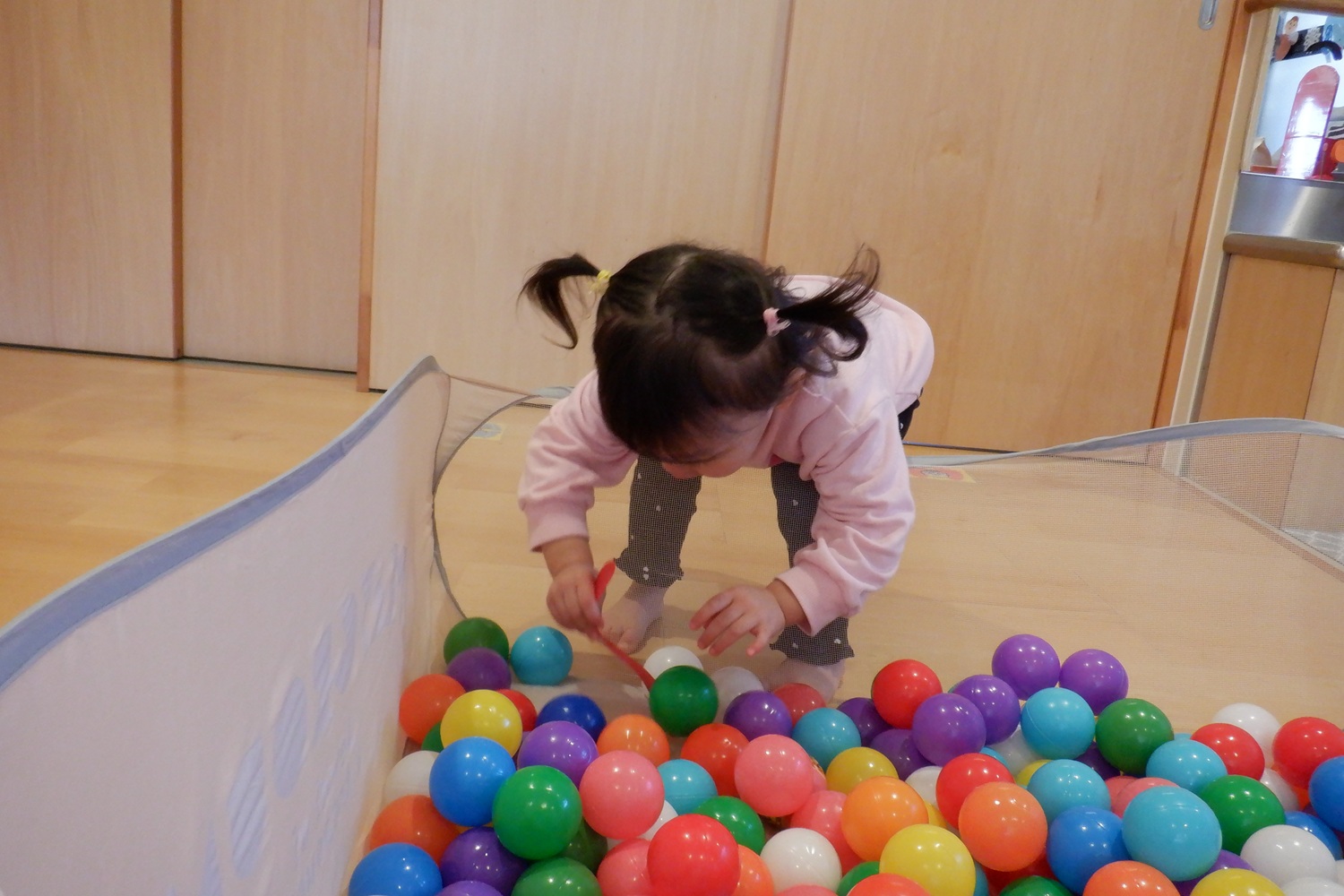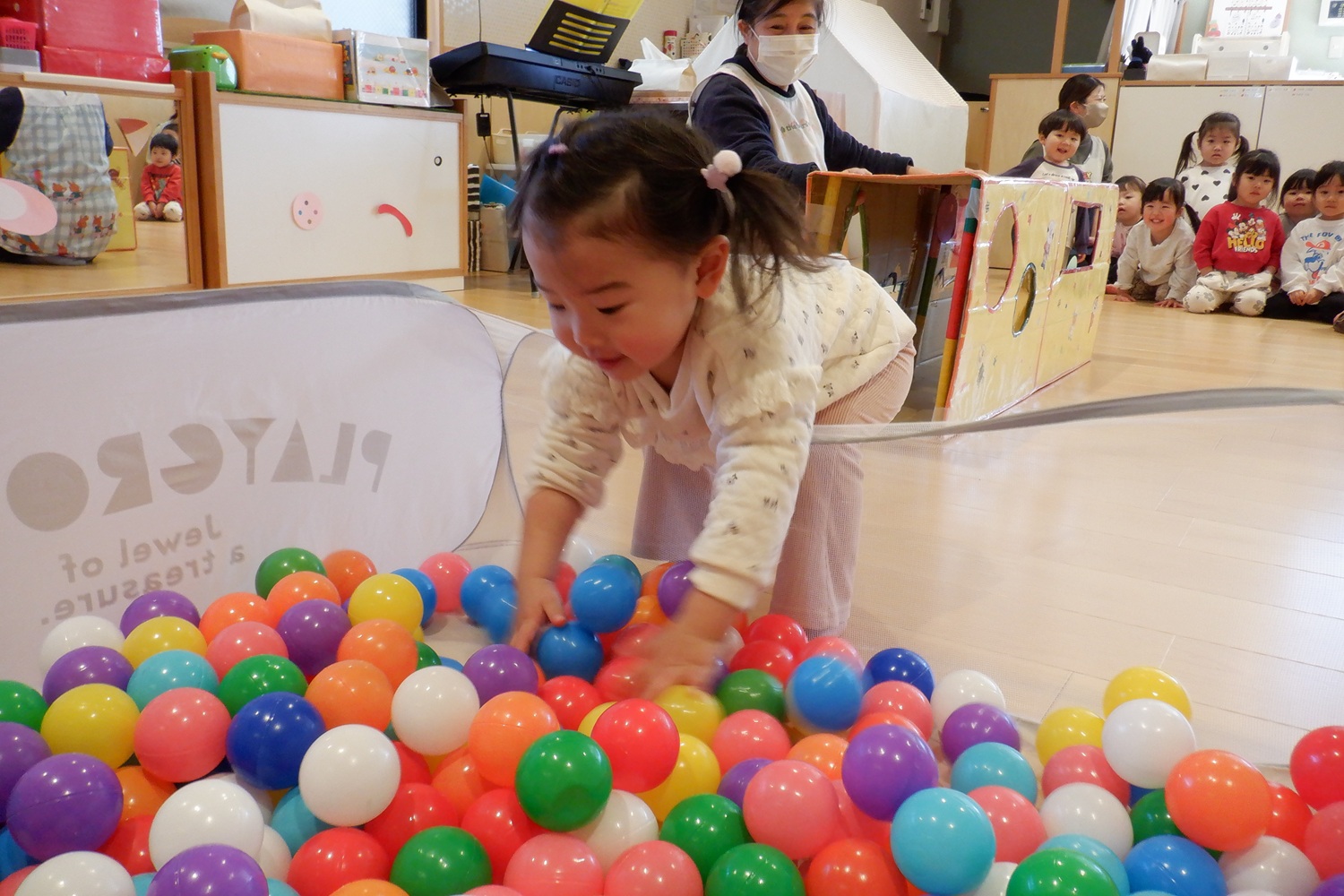 いよいよ雪だるまの顔のパーツを貼ります⛄トンネルの中、ボールプールの中…いろいろなところに隠れているパーツを探せるかな❓👀