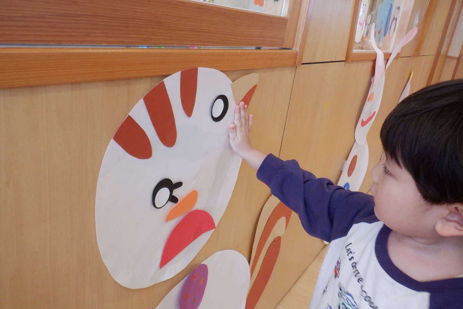 まずは、雪だるまの顔を各クラス🐣🐿🐰「よいしょ!」と運んで貼ってくれましたよ❣