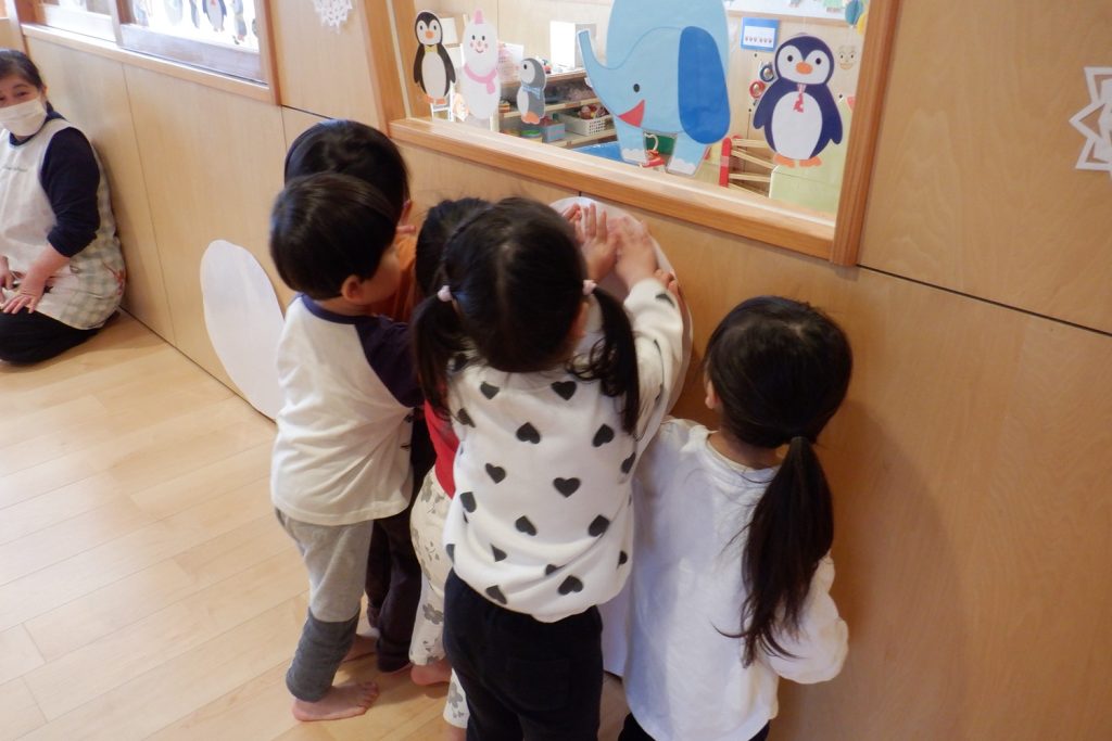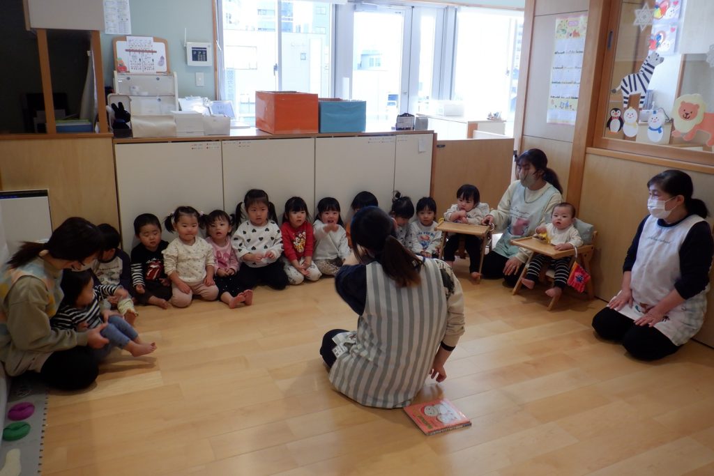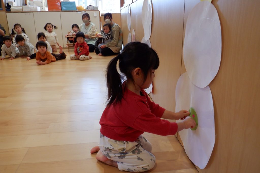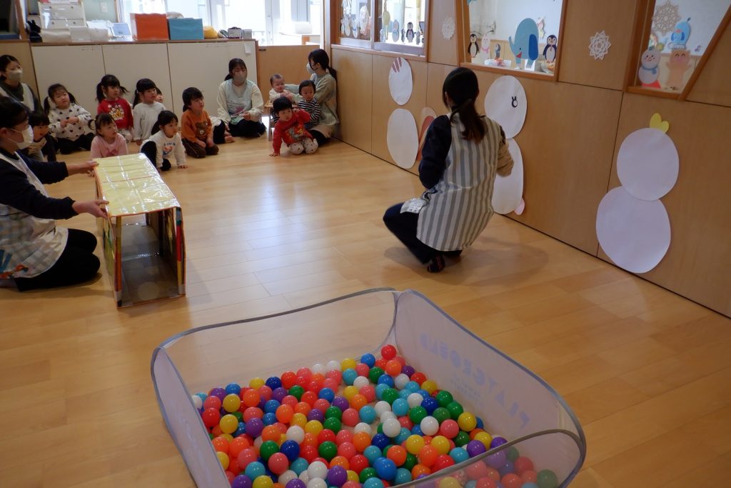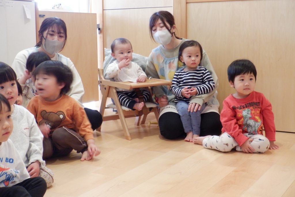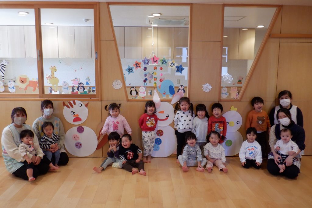 今日は、2月のお楽しみ会がありました⛄今月は、お誕生日のお友達がいなかったのでみんなで雪だるま作りをしました💓みんなが大好きなももんちゃんの絵本を見てワクワク✨