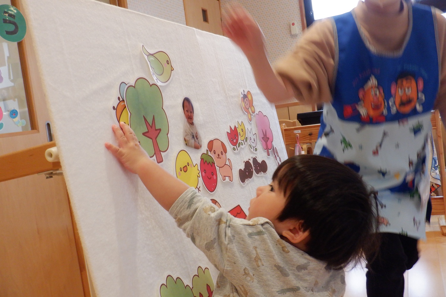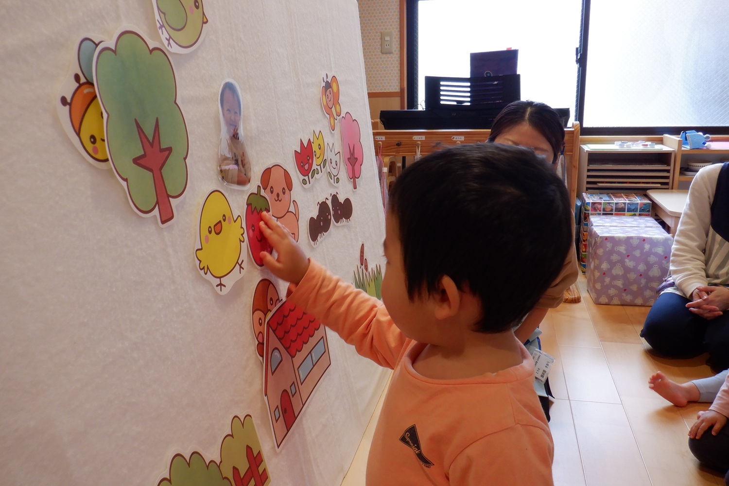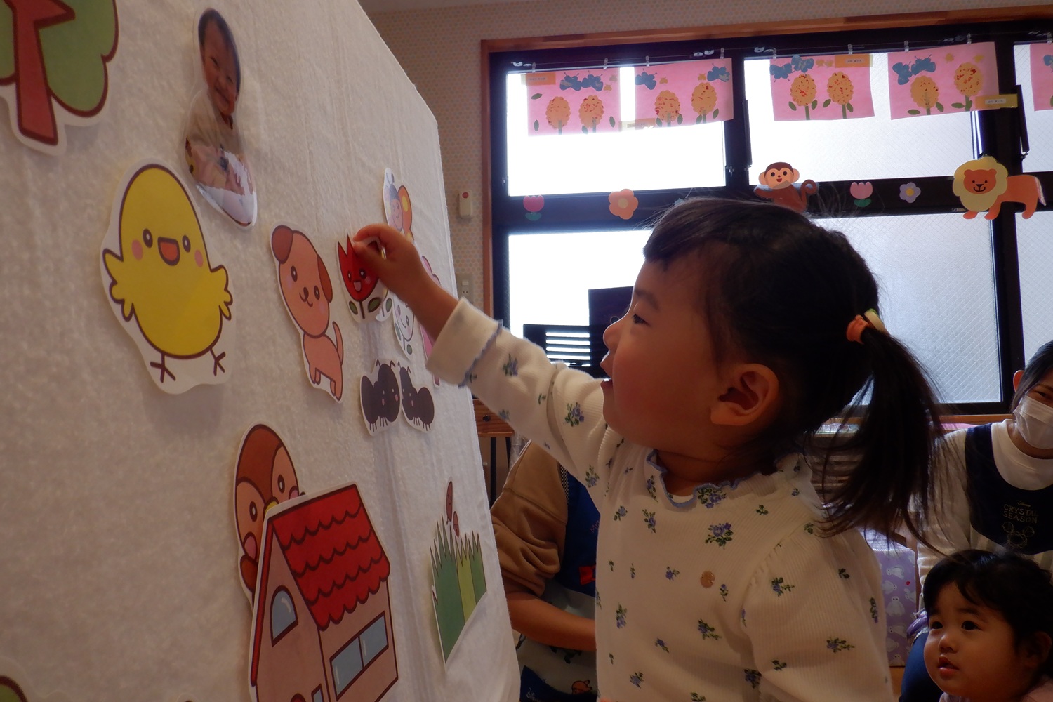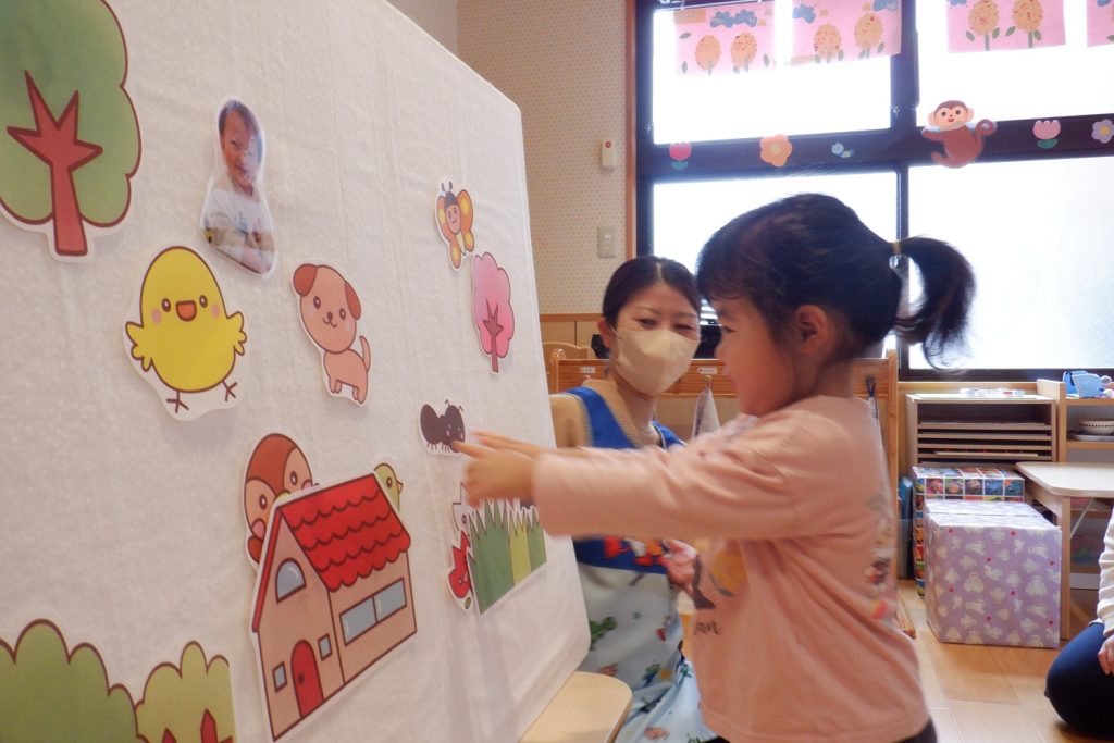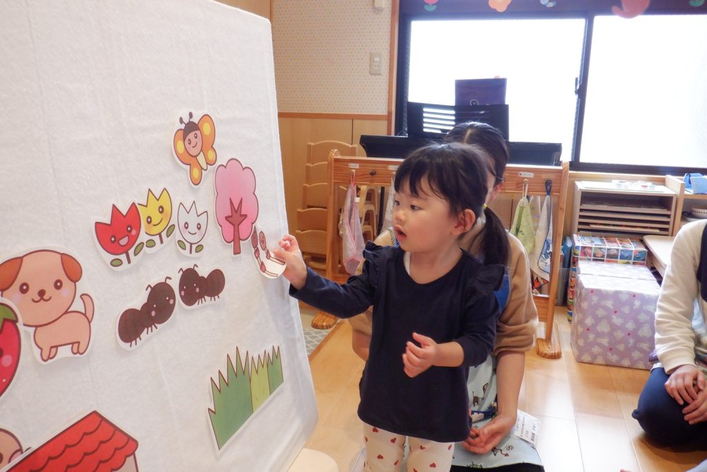 パネルシアターでは、いろいろな春の虫やお花がかくれんぼしていて「でておいで~❣」とみんなが見つけてくれました🦋🌷🐣