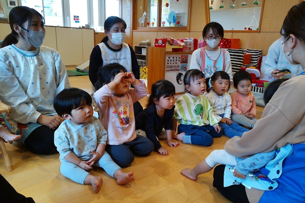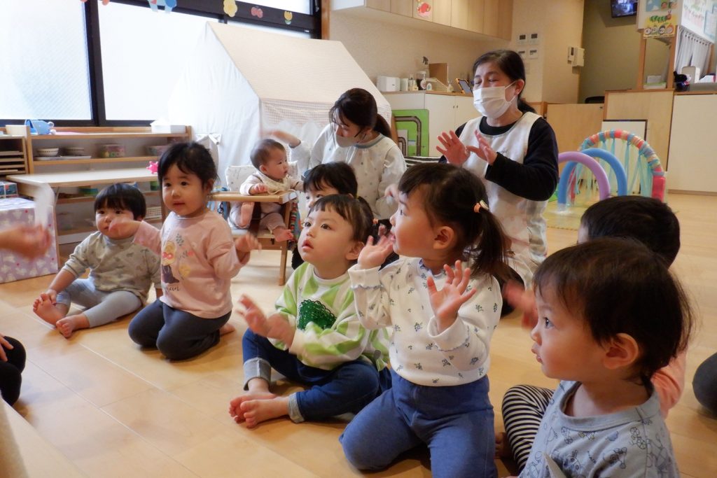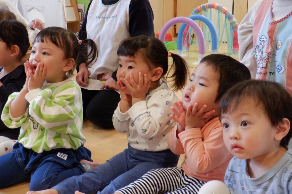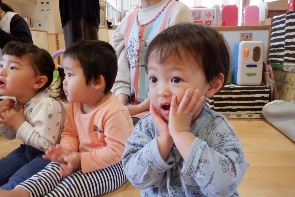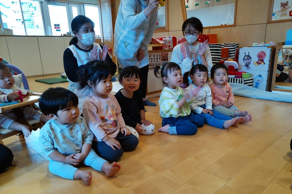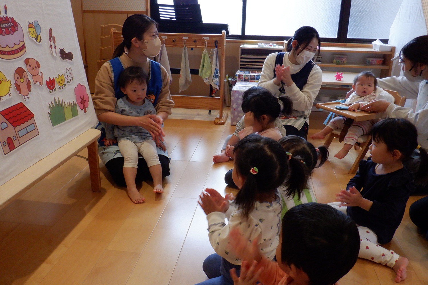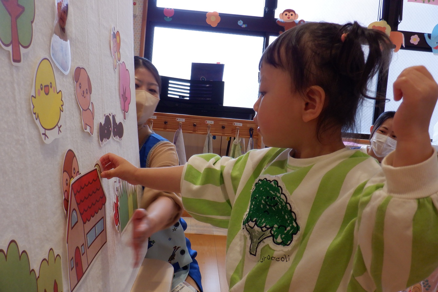 パネルシアターでは、いろいろな春の虫やお花がかくれんぼしていて「でておいで~❣」とみんなが見つけてくれました🦋🌷🐣